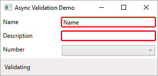 DemoViewModel has 3 fields and imitates long validation process for these fields.