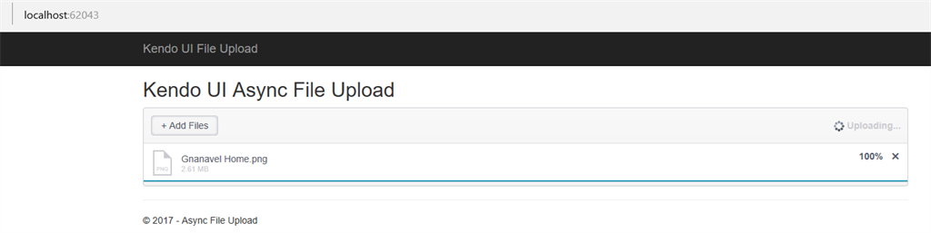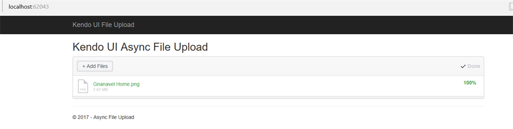 Now, you can see the input control enabled with Kendo Async file upload control.