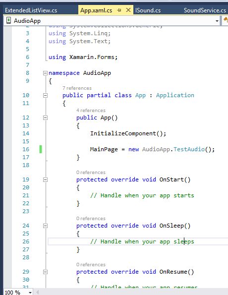 In the "App.xaml.cs", set the main page as new AudioApp.TestAudio(). So, when the button is clicked, a beep sound will be played.