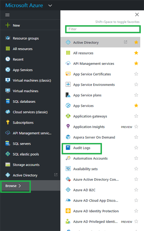 If Audit Logs is not visible after clicking Browse, then you can search in filter, as highlighted in the above image.