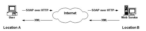 Client at location A will use the Internet to execute remote function calls (RFC) on location B's Web server. The communication is done using the SOAP and HTTP protocol.