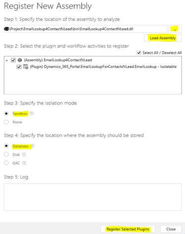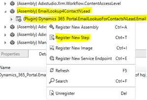 Now, right click on the registered assembly “EmailLookup4ContactNLead” to create a new step.