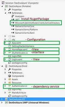 It will automatically create multiple projects like Portable, Android, iOS and UWP. First, we will start to edit the portable project, followed by platform specific project.