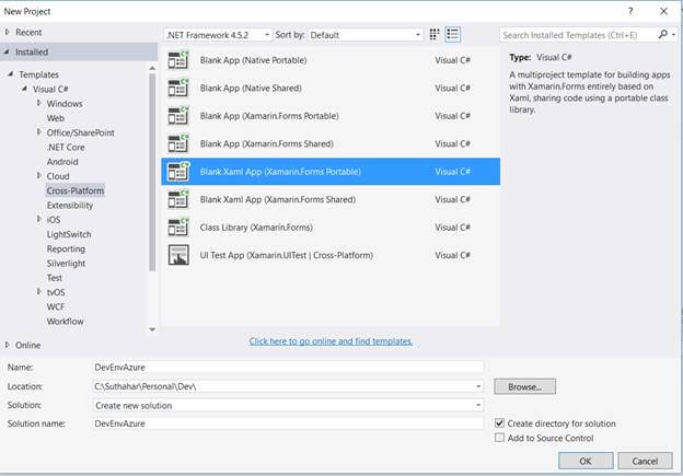 Let's start creating new Xamarin Forms Project in Visual Studio. Open Run ➔ Type Devenev.Exe and enter ➔ New Project (Ctrl+Shift+N)➔ select Blank Xamarin.Forms Portable template.