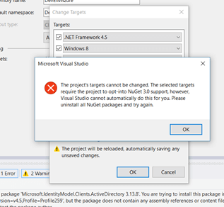 Error: cannot install Package Microsoft.IdentityModel.Client.ActiveDirectory