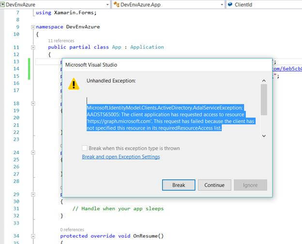 Micrsoft.identityModel.Clients.ActiveDirectory.AdalServiceExceptionAADSTS65005The Client application has requested an access to the resource ‘https//graph.microsoft.com’. The request has failed because the client has no specific resource in its requredResourceAccss list. If you get the error given above, it means try the solution given below.