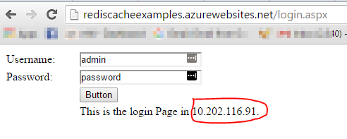 Notice that in the above screen capture, though the IPAddress is different, still we are able to see the username “admin” because the sessions are now stored in a distributed location “Redis Cache” which is accessible for both the instances.
