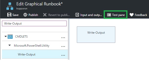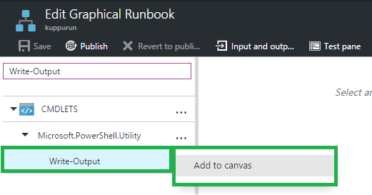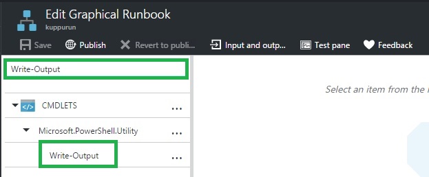 Step 1: In the Library control, click the search textbox and type Write-Output. The search results will be displayed below: