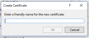 Provide a friendly name for the certificate and click on “OK” button. It would take few seconds to create the Certificate.
