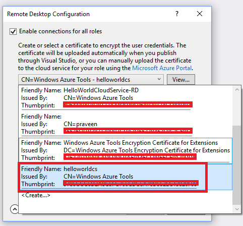 Note: Please note that we are using Visual Studio just to create the .PFX (Personal Information Exchange) file. To understand the complete process of enabling Remote Desktop for a Cloud Service, please refer to my other article Azure Cloud Service – Enable Remote Desktop using Visual Studio.