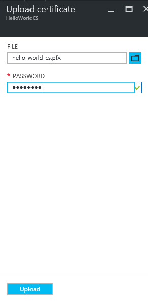 Click on “Upload” button to navigate to the “Upload Certificate” blade.