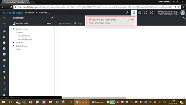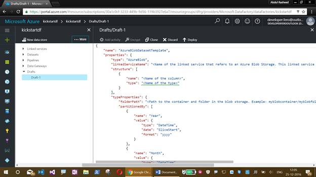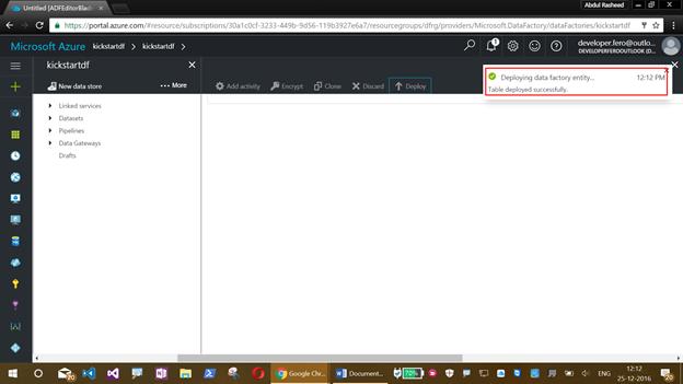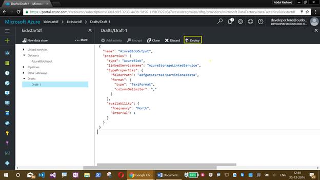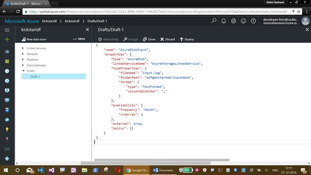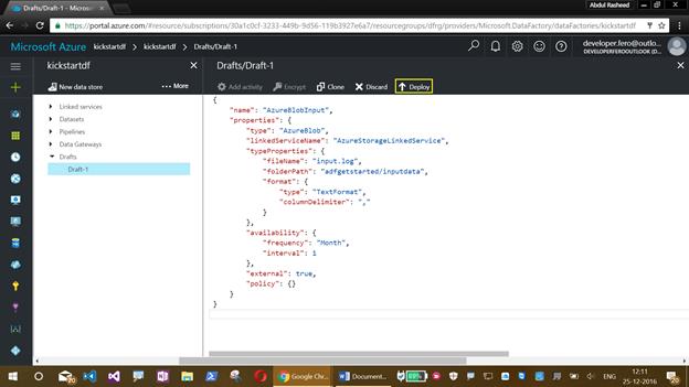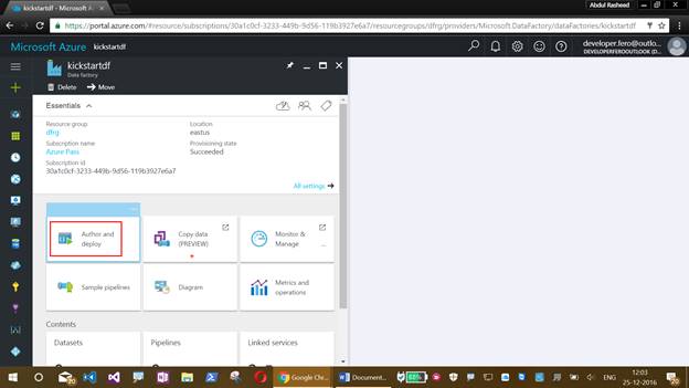 Login to Azure portal. Move to Azure Data Factory account. Click on the Data Factory editor.