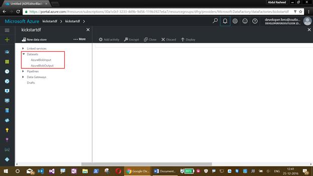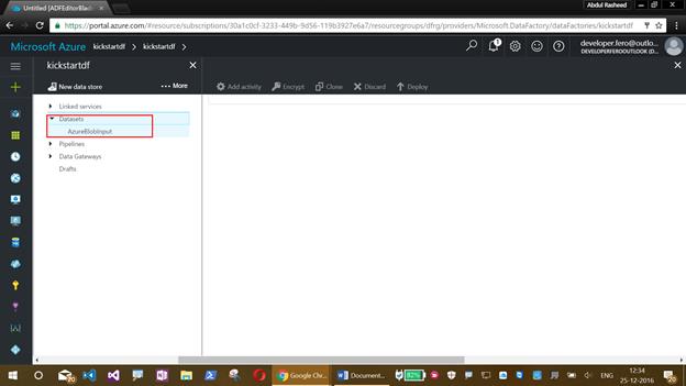 Now, we can find the Dataset on the left pane of the Data Factory blade.