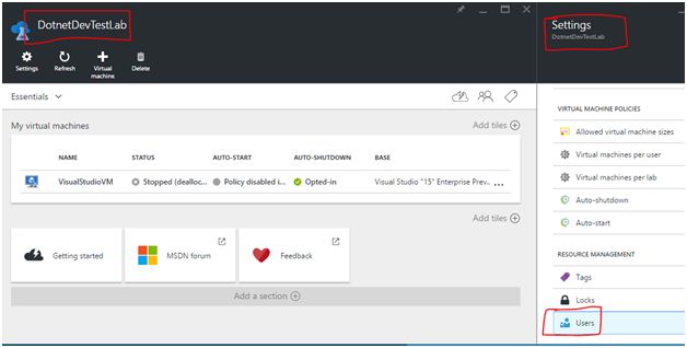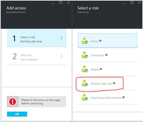 Let’s try adding a new user to the DevTest Lab “DotnetDevTestLab” that we have created in one of our previous articles Azure DevTest Labs: A Self-Service Sandbox Environment – Basics.