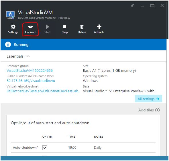You will be taken to the “Essentials” blade of the DevTest Lab, as shown below.