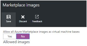 In the “Marketplace Images” blade, click the “No” toggle button, as shown below: