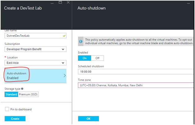 If you remember, while creating the DevTest lab, there was an option to choose “Auto-shutdown” and select the time (along with the Time Zone) on when the VMs to be shutdown automatically.