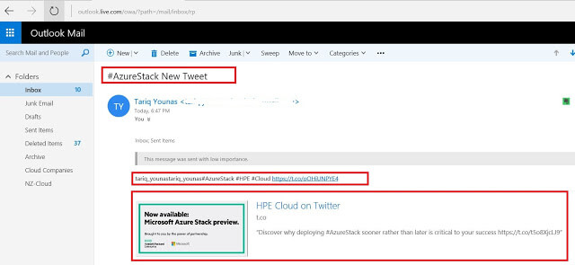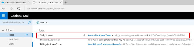 - Now from my Twitter account, I did tweet with hash tag #AzureStack.