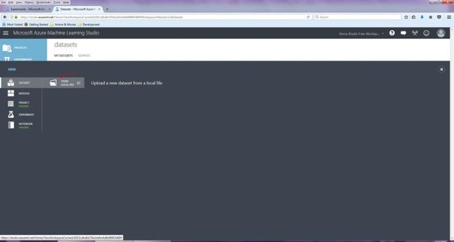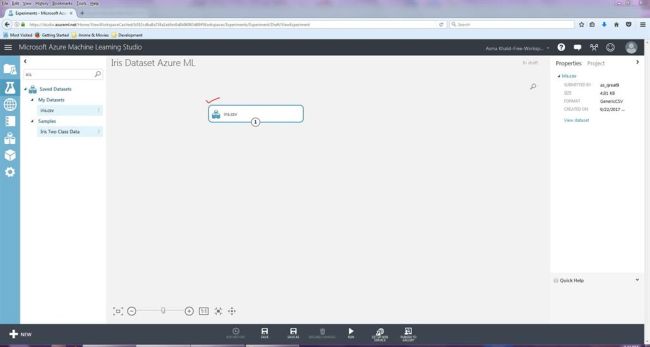 You will see that your Iris dataset is now in the Microsoft Azure Machine Learning Studio.
