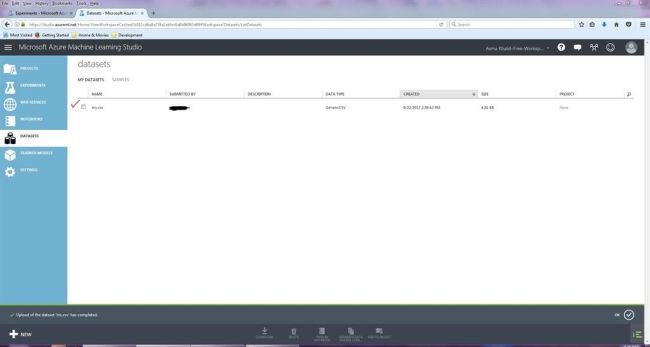 You will be able to see your dataset inside the Microsoft Azure Machine Learning Studio.