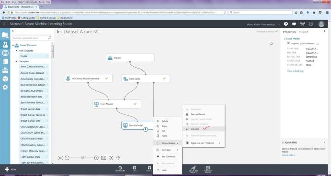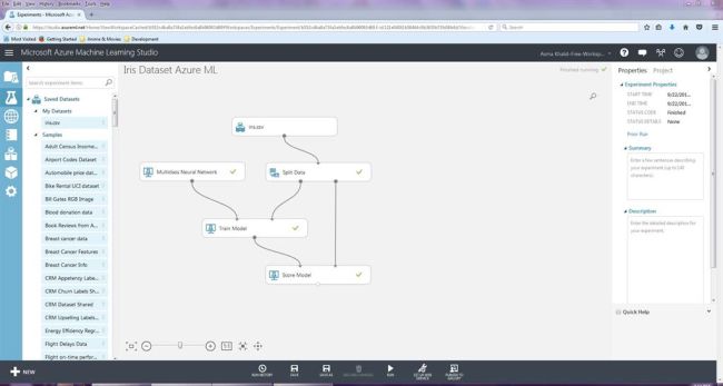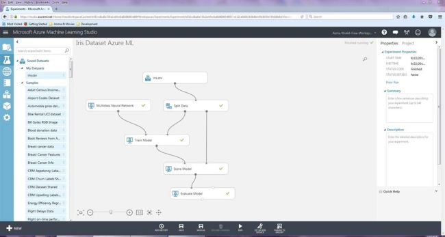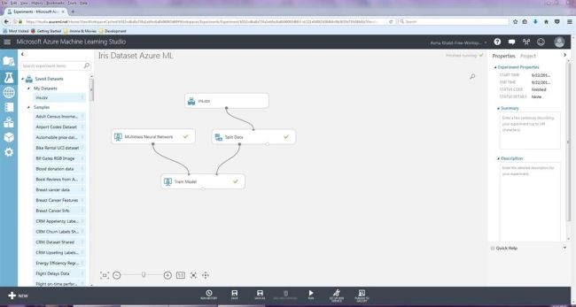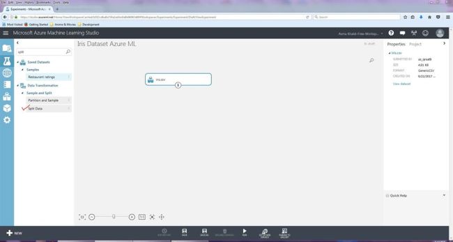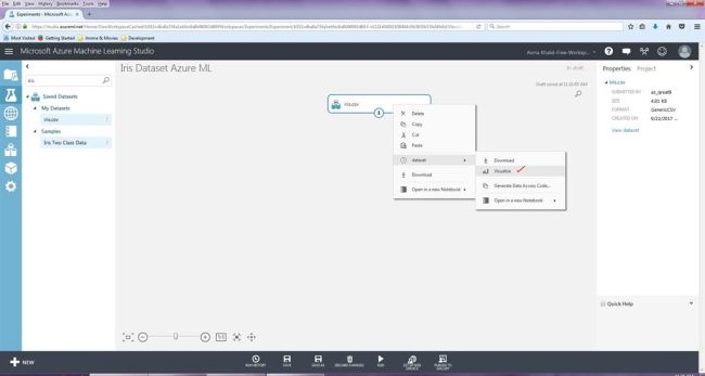 7) Creating machine learning model in Microsoft Azure Machine Learning Studio is just a matter of clicks. So, type Iris on the left side "search experiment items" search box.