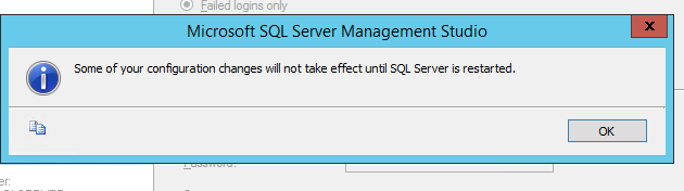 In the properties window, select "Security" in the left hand side and select "SQL Server and Windows Authentication Mode" of the "Server Authentication" section and click on OK Button.