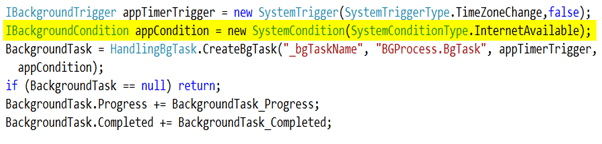 - BackgroundTask = HandlingBgTask.CreateBgTask("_bgTaskName", "BGProcess.BgTask", appTimerTrigger, null);