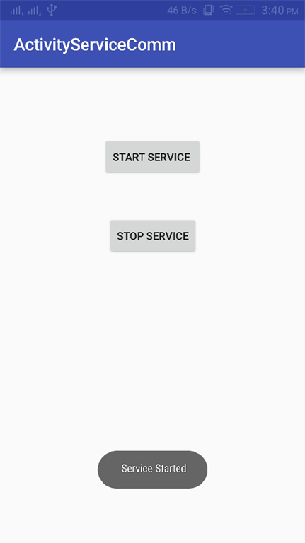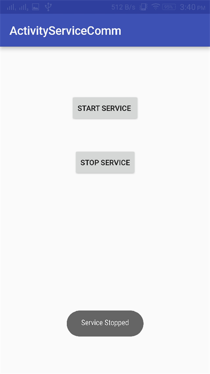 This article explains about a service in Android and how they started and how to interact with them with the help of buttons we created, although it is running in background that's why we can't see it . In the next article we will learn how to bind activity with services and communication between them.