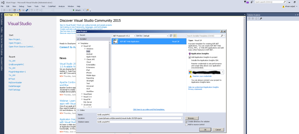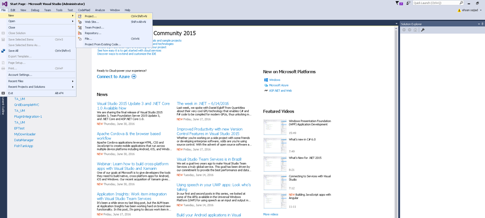 Now, create a new ASP.NET MVC 5 web application. Open Visual Studio 2015. Go to File >> New >> Project.