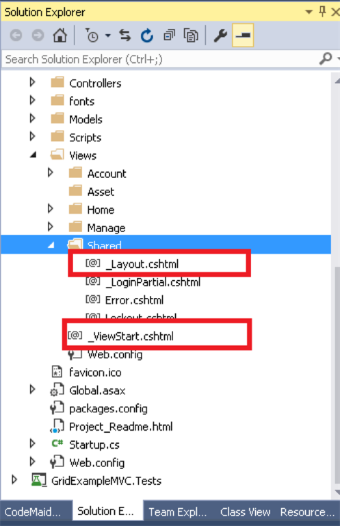 After registering the scripts and style for datatables, we need to add them in our master layout which is by default _Layout.cshtml located in Views >> Shared as defined in the _ViewStart.cshtml, located in the same location.
