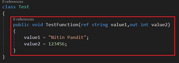 - We can use out or ref keyword with function arguments to get the changed value outside from function block.