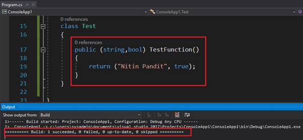 That means, you just need to add System.ValueTuple into your project and you are able to use Tuple as Value type data type. Let’s see now, how to call that function and get these values.