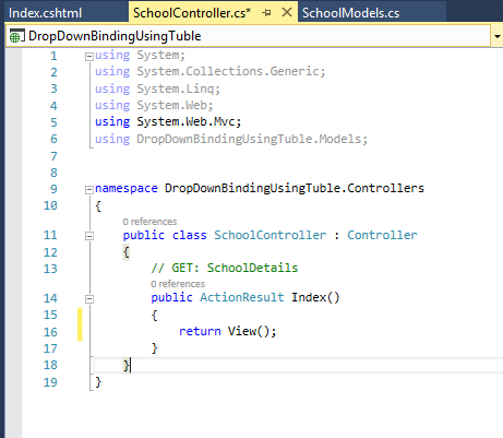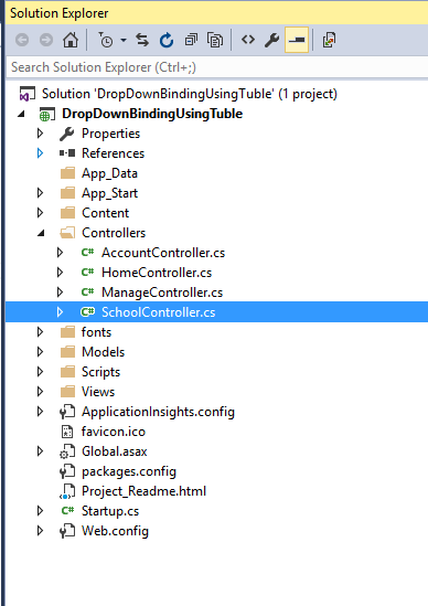 Next, let's create a simple controller under Controllers folder. Here, I have created a simple controller and named it as "SchoolController".