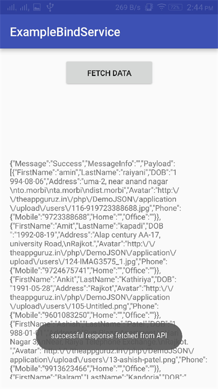 In this article we have learned how to bind service with an activity and send data back to activity from service. In the next article we will see binding activity with service using messenger.