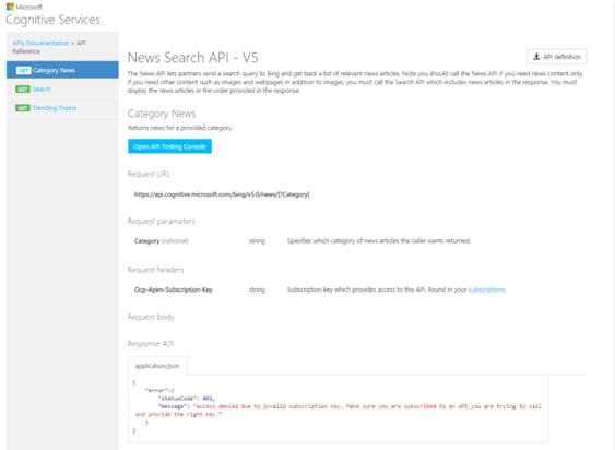 - <h2>Bing News Search API</h2>