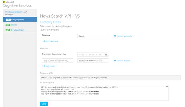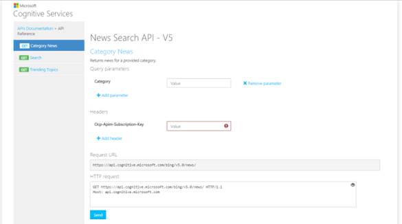 Here, on this tool, you need to select Category and Ocp-Apim-Subscription-Key. You can get the subscription key from Cognitive toolkit API site.