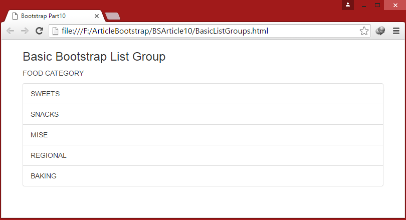 Lets create Basic List Group by writing following code and see output.