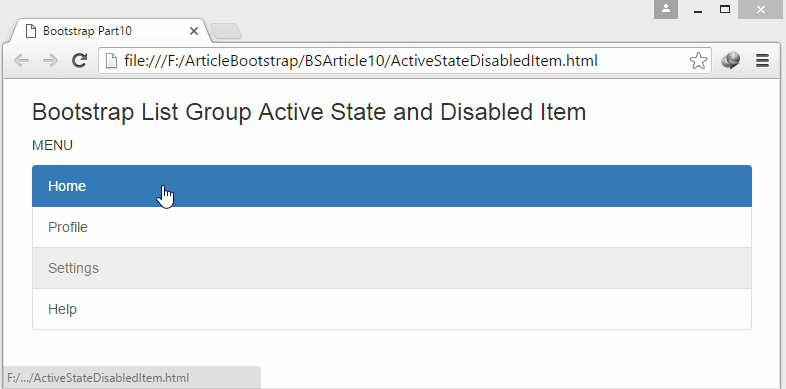 Lets create example of Active State and Disabled Item In List Group by writing following code.