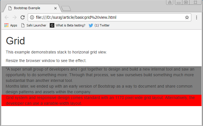 The first example of Bootstrap grid view that we are going to look is stack to horizontal. In this, we will create a basic grid view, which will first open as a stack on the mobile, before becoming horizontal on the desktops.
