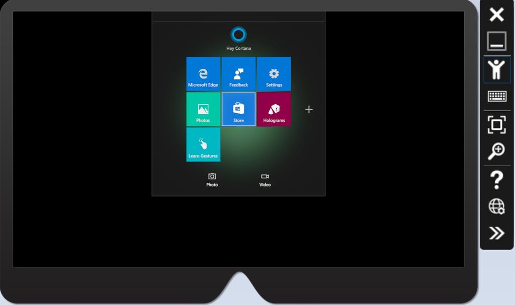 - Click on the arrow next to the Device button, and select HoloLens Emulator.