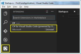 As we know, VS code works with multiple languages and by default, VS Code is a simple editor, not language specific. To support the language, there are many extensions available. Here, I am going to create an Application, using C# language, so I have downloaded the C# extension.
