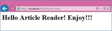 In the view, I have just added simple text "Hello Article Reader! Enjoy!!!".