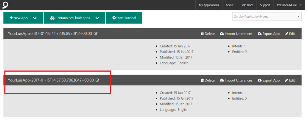 To configure the message, we need to follow the steps given below. Subsequently, login into LUIS (Language Understanding Intelligent Service), using your valid Microsoft account. Now, you will be able to find your applications in the application lists.