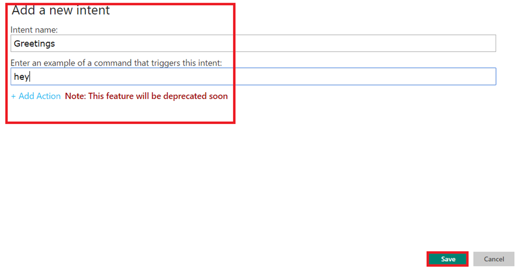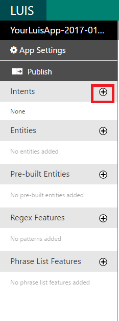 Now, click on your application and start configuring to retrieve the best results. In LUIS API Application Window, click on Intents option, which is present on the left side on the Window. In Add, a new intent wizard; provide the credentials like intent name and example of an intent command and click save.