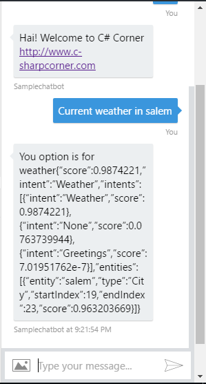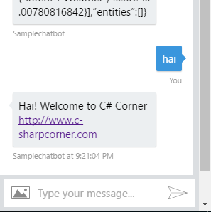 In bot Service Window, you will be able to find chat Window, which is cascaded at the right side. By using it, one sends a message to bot Service and finally, you get a response for the bot. Here, our bot application is working but it does not send any useful information which is needed by the users.
