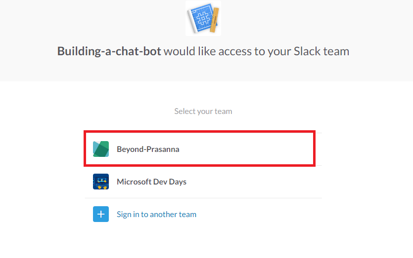 If your Slack account has multiple teams, select an appropriate team in which you need to configure bot. Now, click authorize button to complete this process.