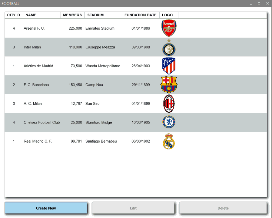 - Data = new ObservableCollection < FootballClub > (_repository.All());