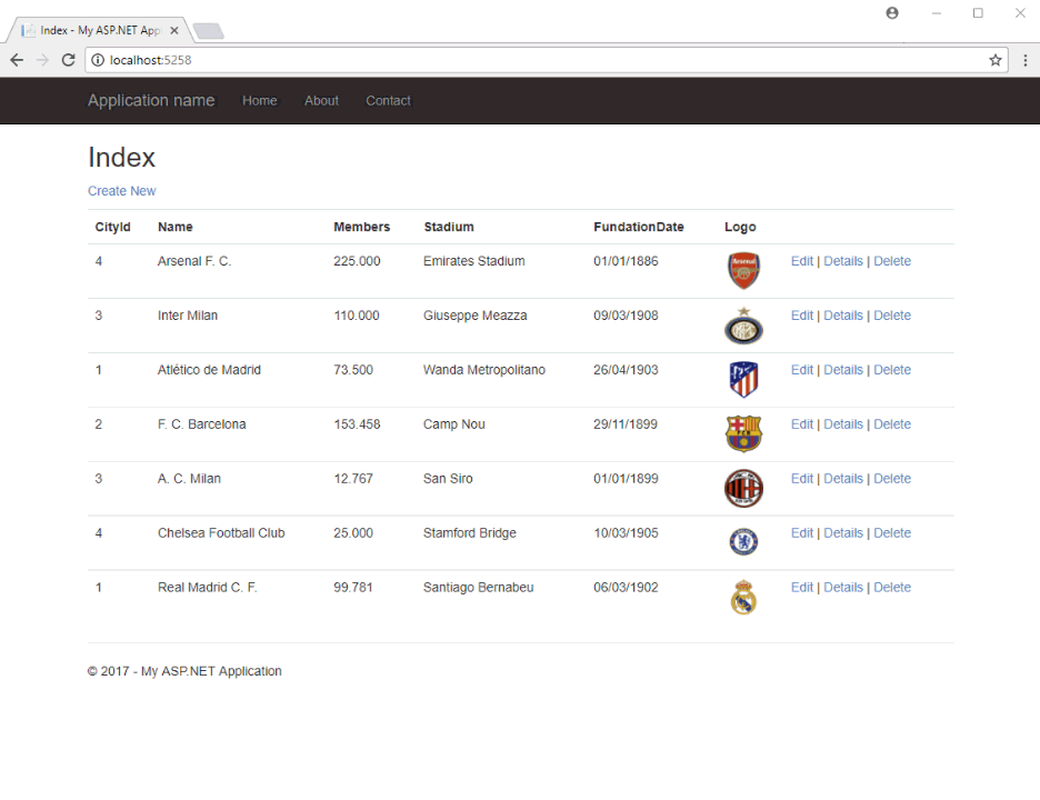 For Create post action, we will employ the Add repository method for create a new FootballClub database row.