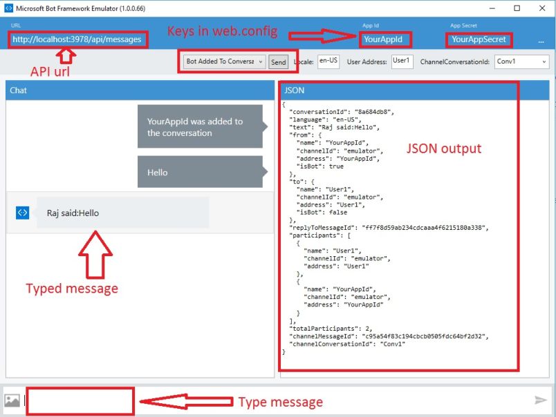 - URL - You have to mention your application url with port before api/messages.