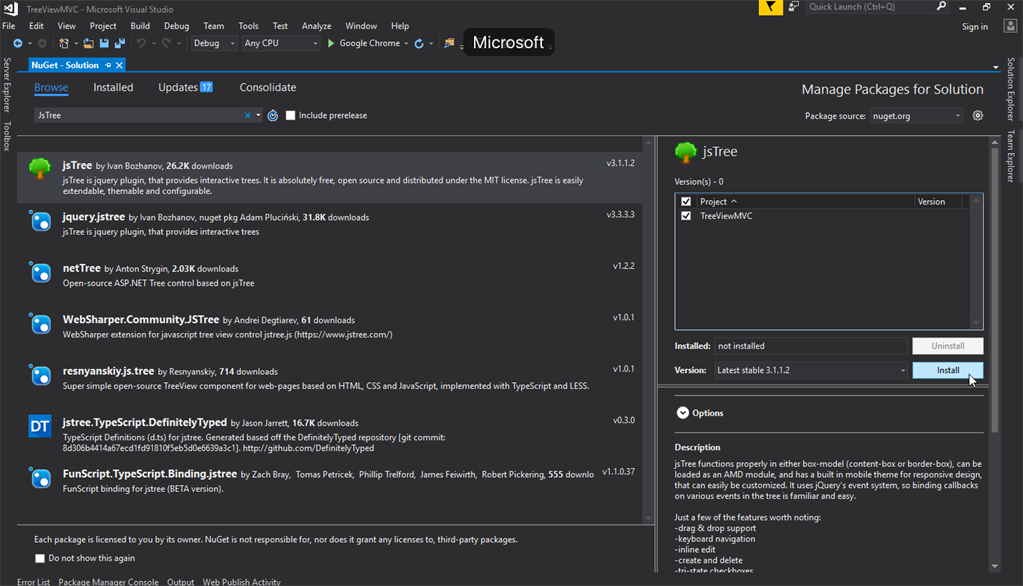 Now, we have to define the View "TreeView" in our Controller "Home controller".